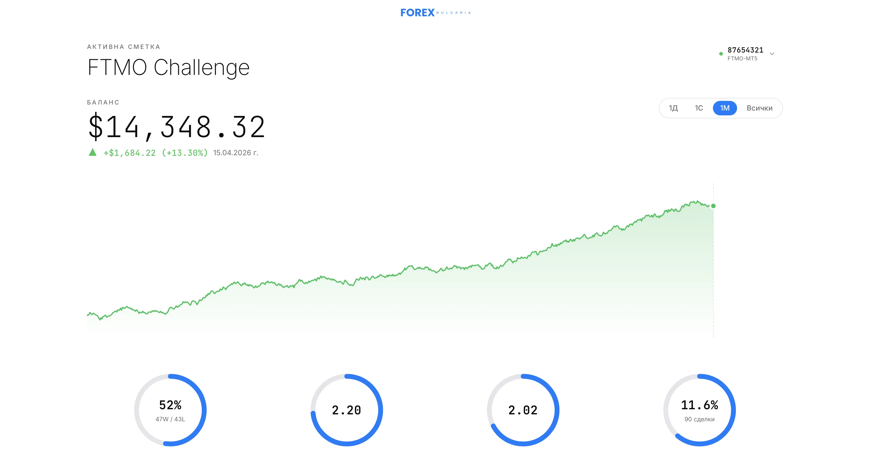 Активирай на MT5 сметката си. Стратегията работи и изпраща сигнали автоматично — на лична или prop firm сметка.